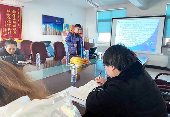 此次會議分別從肉雞飼養(yǎng)管理、檢測中心項目介紹、雞的常見病與用藥常識,電商專供產(chǎn)品介紹四個方向?qū)﹄娚虉F隊成員進行系統(tǒng)培訓。