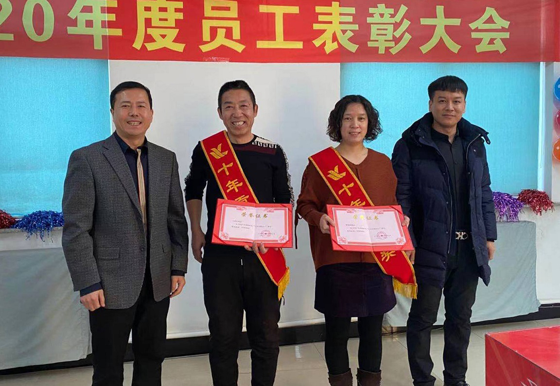 閆希東、薛曉娟獲得2020年度十年貢獻獎,十年的堅守不渝,十年的默默耕作,他們把最美好的青春韶華賦予了我們?yōu)橹餐瑠^斗的事業(yè),十年如一日他們時刻心系企業(yè)的憂患,與企業(yè)同風雨共命運,正是因為他們的付出凱為的今天才如此絢麗。公司總經理王鐵良與銷售部經理趙福寬為獲獎者頒發(fā)榮譽證書。