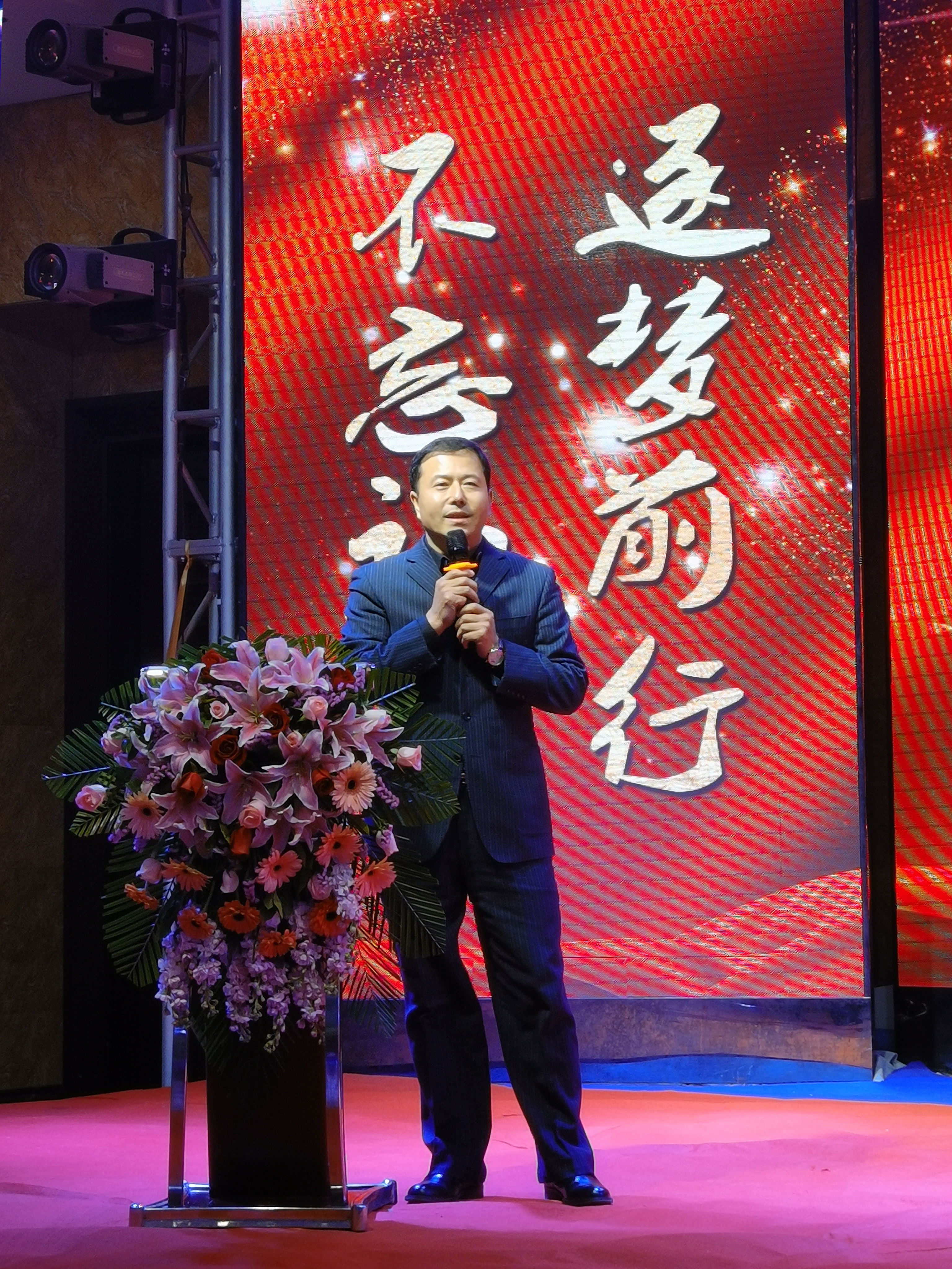 特約嘉賓陳峰陳總首先上臺(tái)致新年賀詞,分享了他從業(yè)二十多年的心得體悟,并對(duì)凱為精神進(jìn)行了高度贊揚(yáng),同時(shí)也對(duì)凱為人在新的一年提出新了的要求。