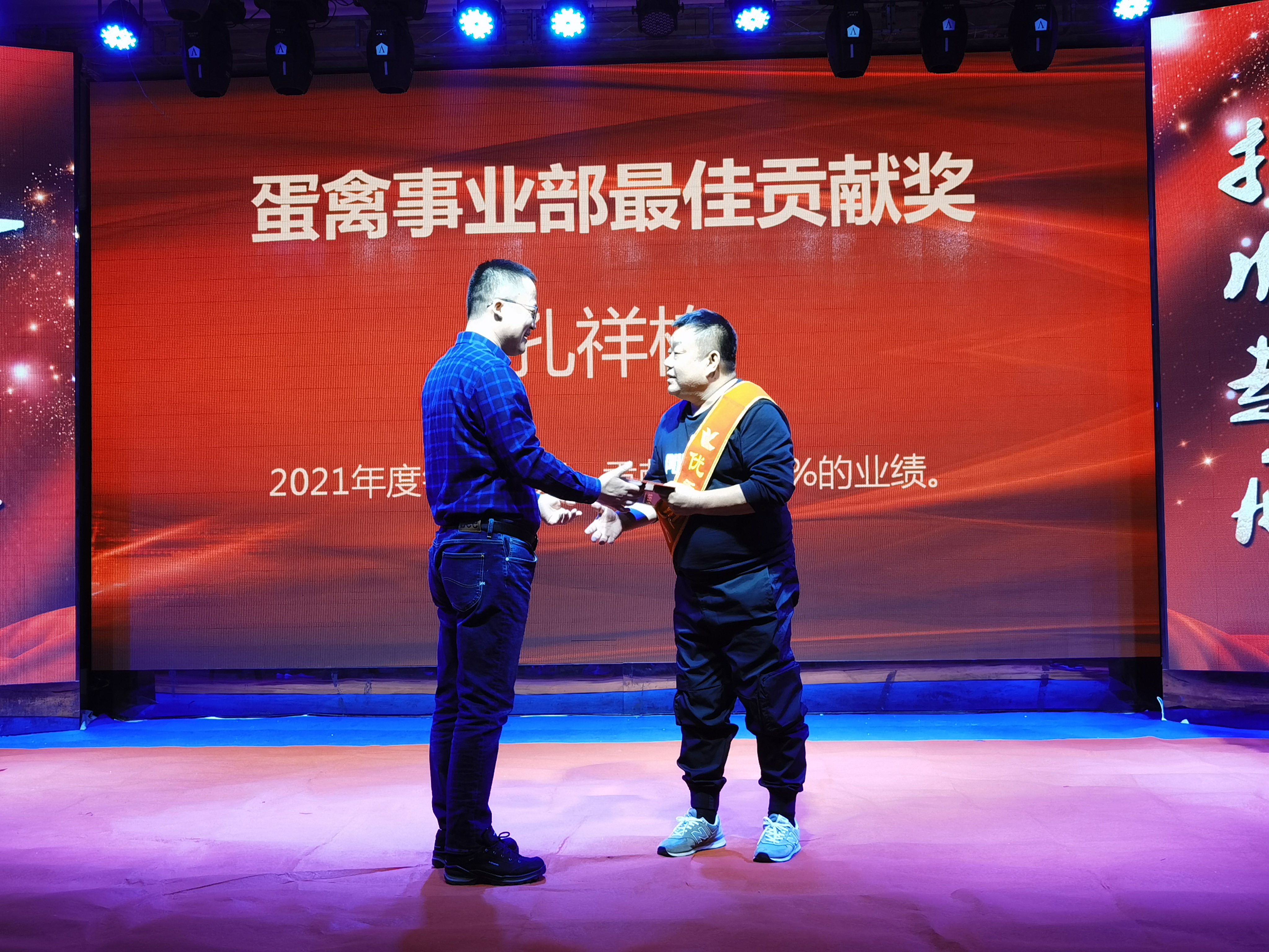 李榮久獲得年度銷售亞軍,2021年他和技術(shù)部李總服務(wù)了錦州周邊10余個(gè)大型養(yǎng)殖場(chǎng),無數(shù)個(gè)星辰雨夜,多少次寒風(fēng)冷雪都有著他們的身影的穿梭。精誠所至,金石為開,他用拼搏精神再次創(chuàng)造了年度銷售的奇跡。公司總裁王鐵良為獲獎(jiǎng)?wù)?/span>頒獎(jiǎng)。
