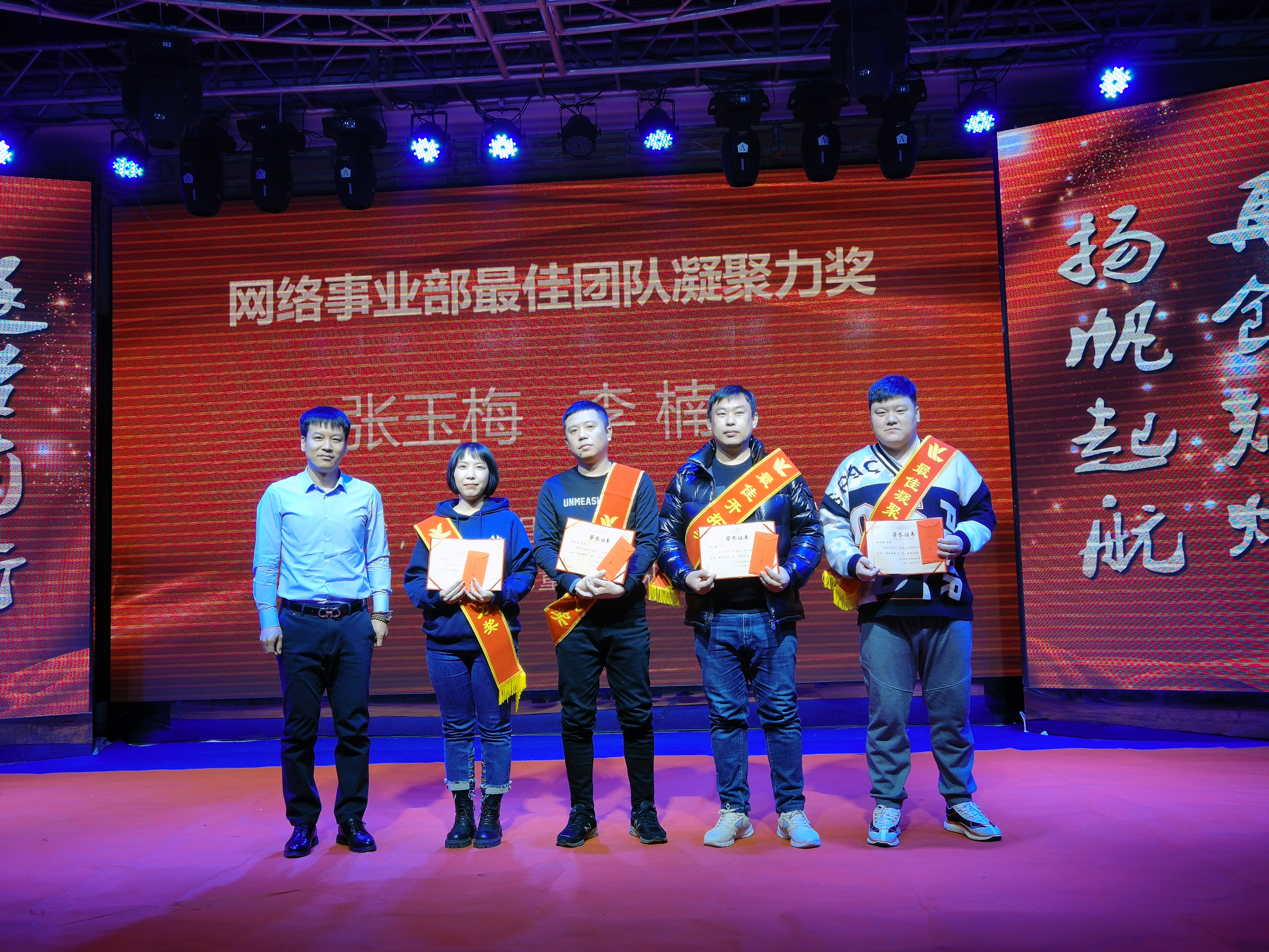王爾春獲得網(wǎng)絡(luò)事業(yè)部最佳開拓獎(jiǎng);張興海獲得網(wǎng)絡(luò)事業(yè)部最佳新人獎(jiǎng);張玉梅、李楠獲得網(wǎng)絡(luò)事業(yè)部最佳團(tuán)隊(duì)凝聚力獎(jiǎng)。公司網(wǎng)絡(luò)事業(yè)部總經(jīng)理趙福寬為獲獎(jiǎng)?wù)?/span>頒獎(jiǎng)。